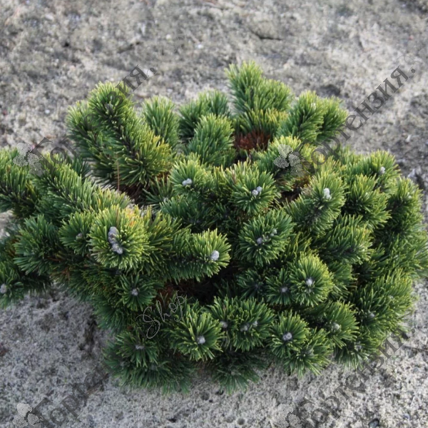 Сосна горная Якобсен - карликовый сорт нерегулярной формы, с возрастом превращается в небольшое деревце с очень уникальным габитусом, напоминающим естественную форму бонсай. Растёт очень медленно, к 10-ти годам высота до 70 см. Хорошо поддаётся фигурной стрижке. Хвоя пышная, тёмно-зелёная. Место солнечное, к почве и влаге нетребовательна. Рекомендуется для японских садиков и контейнеров.
