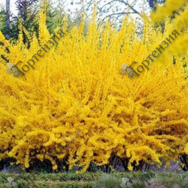 Форзиция промежуточная Курталин (Forsythia intermedia Courtalyn) Раскидистый кустарник, достигающий около 1,5 м высоты. Цветки большие, жёлтые, цветёт обильно в апреле. Цветёт регулярно и обильно сразу после схода снега, апреле-мае, до распускания листьев. Листья ярко-зелёные. Хорошо растёт на солнечных местах и достаточно влажных почвах. Рекомендуется для приусадебных участков, городских садов, парков.