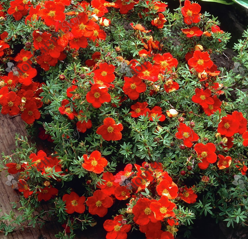 Лапчатка кустарниковая Ред Айс (Potentilla fruticosa Red Ace) – низкорослый кустарник высотой 50-60 см и шириной 100-120 см, с подушковидной плотной кроной. Листья перистые, серебристо-зелёного цвета. Цветки  оранжевые на ярком солнце и красно-оранжевые в полутени. Декоративно смотрится в рабатках, миксбордерах, в групповых посадках, в качестве бордюра.