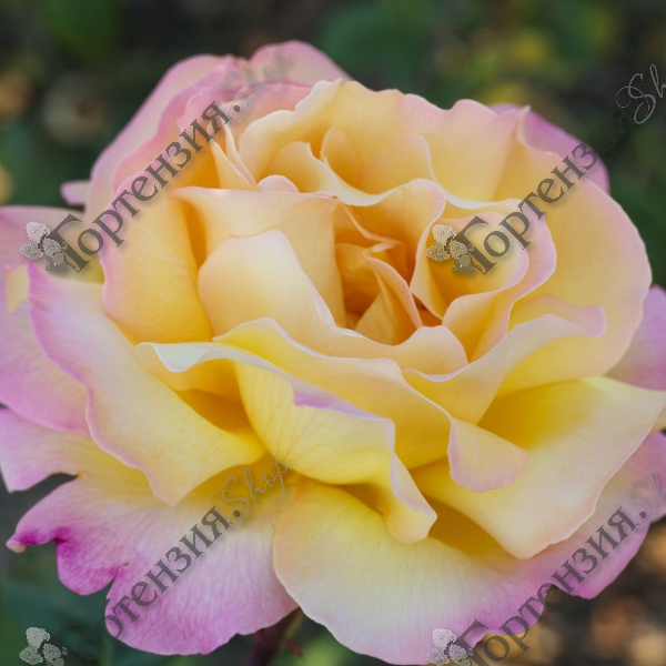 Роза чайно-гибридная 'Mme.A.Meilland' (Rose hybrid tea 'Mme.A.Meilland') также исзвестна как Gloria Dei - мощный уравновешенный куст, цветок диаметром 12 см, распускается мягкого желтого цвета с карминно-розовым по краю каждого лепестка цвета. Бутоны крупные бокаловидные, махровые около 42 лепестков. Располагаются как одиночно так и группами до 3 шт. Обладает легким ароматом. Цветёт куст продолжительно, почти не прекращая цветения, высотой до100-120 сантиметров, густой, листки крупные пышные матовые зелёные. Растения устойчивы к болезням. Место для посадки должно быть солнечным, почва должна быть плодородной, рыхлой и хорошо дренированной. Весенняя обрезка направлена на удаление слабых и поврежденных побегов, а также на формирование красивого куста. Универсальный сорт, который прекрасно вписывается в различные садовые композиции, идеальным выбором для создания клумб, розариев или для украшения парадной зоны, в срезке.