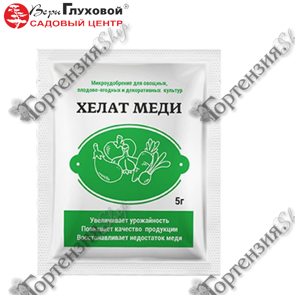 Хелат меди - высокоэффективное экологически чистое водорастворимое микроудобрение в биологически активной форме, применяется для профилактики и лечения болезней и хлороза вызванного дефицитом меди. Медь важна для фотосинтеза, метаболизма белков и углеводов.